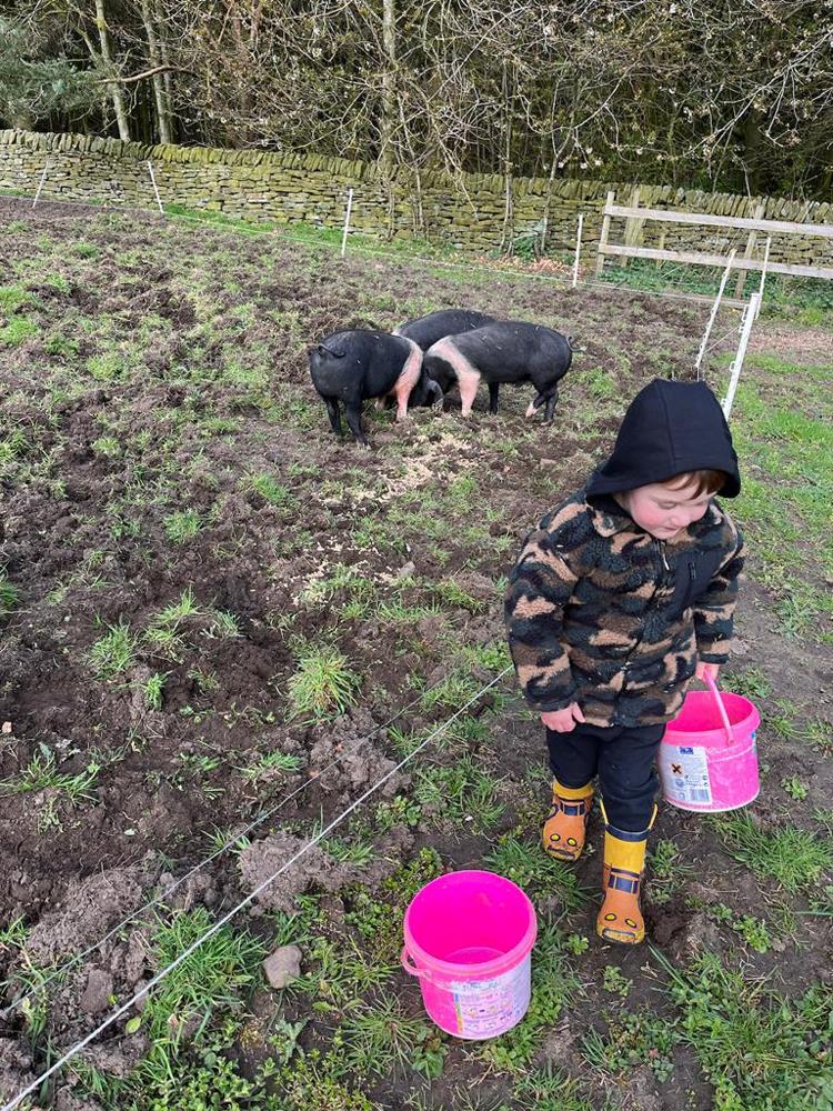 Below we attach a variety pictures of 'Spring' at Uppergate Farm. Lamb feeding; pigs in the wood; Buster the micro pig !!; calves ready to be turned out into the fields in early May; trees coming into leaf on the way up to the Yurts and to the Shepherds Hut; bluebells in the surrounding woodland; daffodils in full bloom; Philip the pheasant. A joy!!