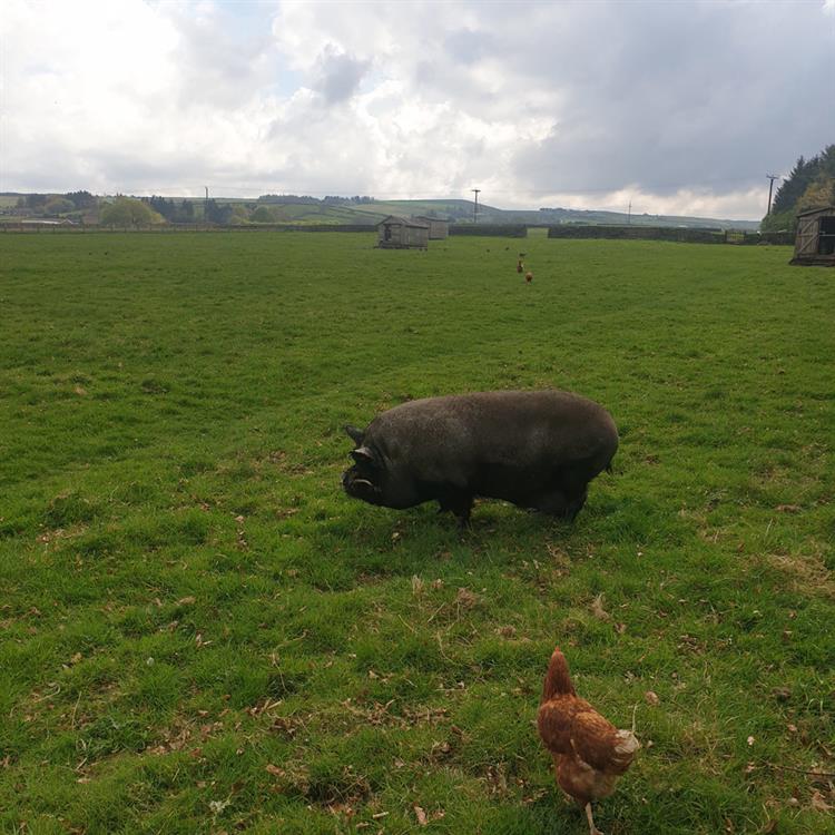 Below we attach a variety pictures of 'Spring' at Uppergate Farm. Lamb feeding; pigs in the wood; Buster the micro pig !!; calves ready to be turned out into the fields in early May; trees coming into leaf on the way up to the Yurts and to the Shepherds Hut; bluebells in the surrounding woodland; daffodils in full bloom; Philip the pheasant. A joy!!
