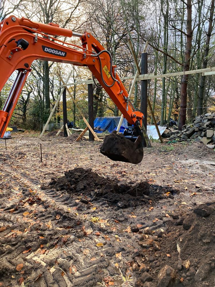 Things rarely stand still at Uppergate Farm : Klavs (pictured) is on with building our new log fired sauna which we hope to complete later this summer.