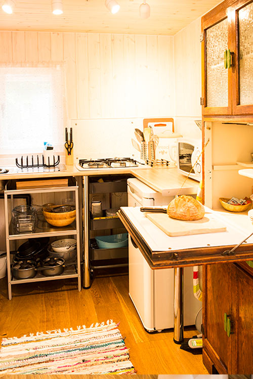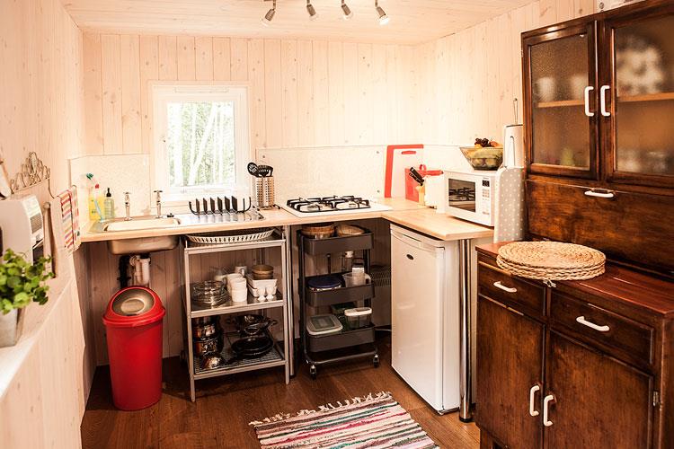 While you've got a shower room attached to the yurt and your own private hot tub on the deck (watch the cows and sheep in the next field while you soak!), you'll also find a heated indoor pool with sauna and steam room 10 minutes' walk away. There is a free to use shared pool slot at 7pm each evening for 70 minutes or, given notice you can pre-book a private slot in the pool at a modest price. Follow the gravel path back through the woods to reach the main farm building, where there's a shop with both farm produce and WiFi so you can stay connected. You can take your fresh supplies back to your own kitchen hut, attached to the yurt so you don't even need to brave the elements for a cuppa on chilly mornings.