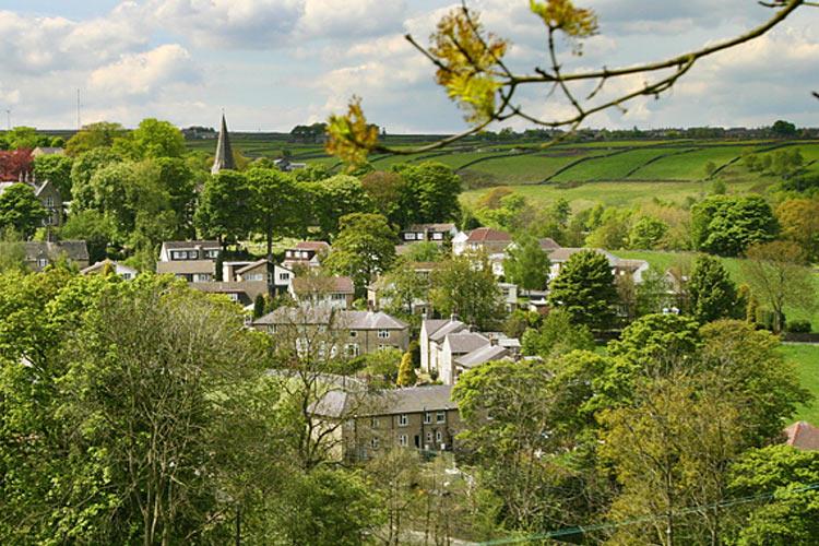 Hepworth is overlooked by outcrops of the Southern Pennines and the village nestles under the striking hill in the picture which has the unusual name of 'Cheesegate Nab'.